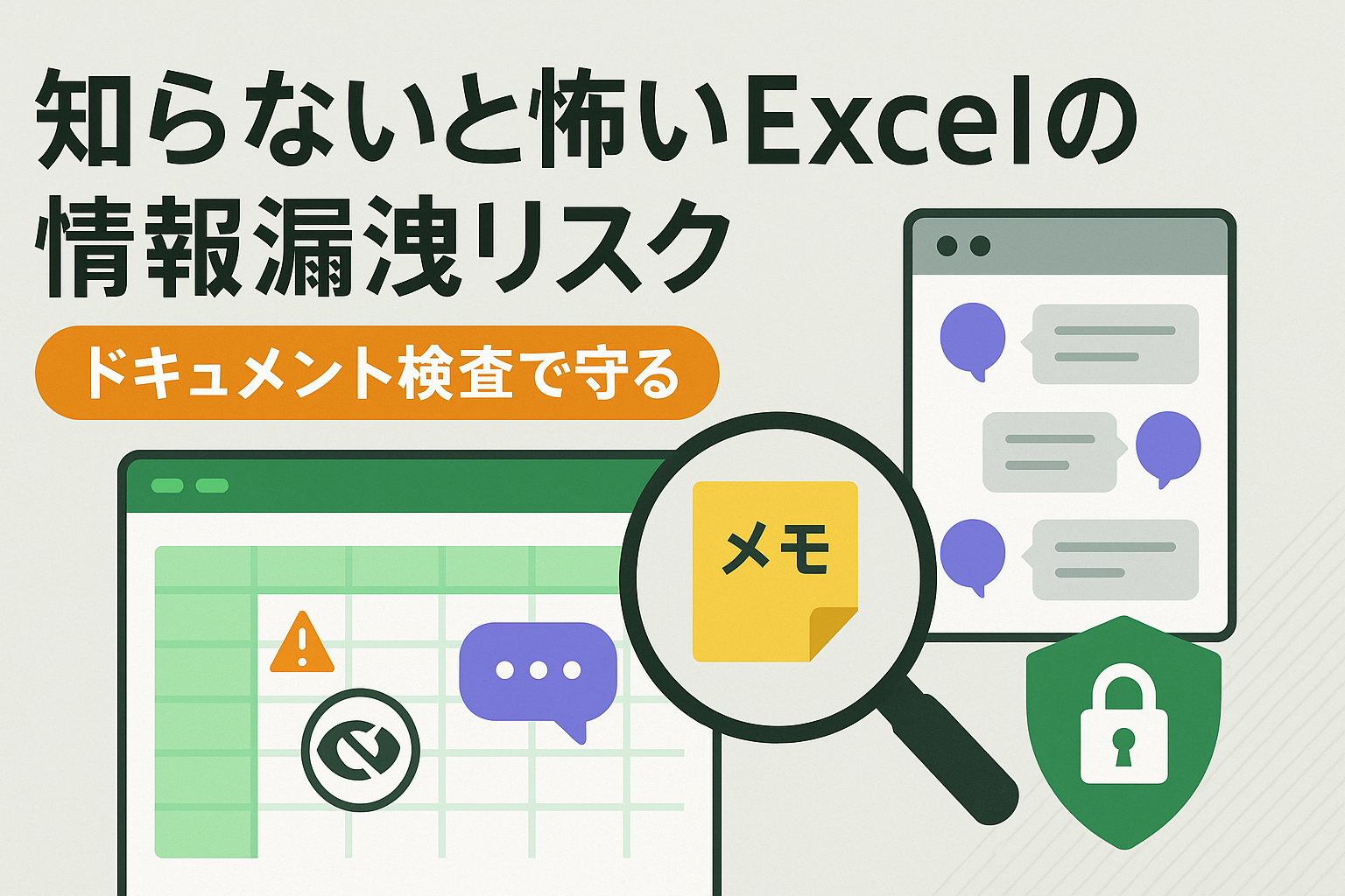 新しい職場で前任者からExcelファイルを引き継ぐ、というのはよくある話です。しかし、そのファイルにどのような情報が隠されているか、意識したことはあるでしょうか。一見きれいに見えるシートにも、メモやコメント、作成者の個人情報、意図的に隠された行や列など、外部に出すべきではない情報が眠っているかもしれません。これらを手作業で一つひとつ確認するのは、膨大な時間がかかり現実的ではありません。