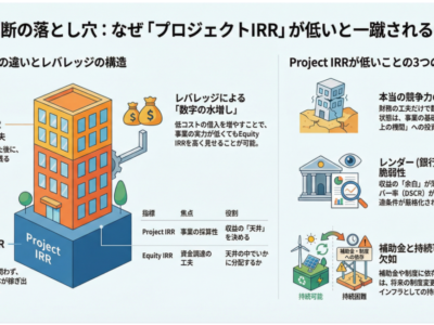 私のプロジェクトファイナンス・モデリング講座の中で、電力会社にお勤めの受講生から、非常に本質的な質問をいただきました。あるプロジェクトの検討中、Equity …