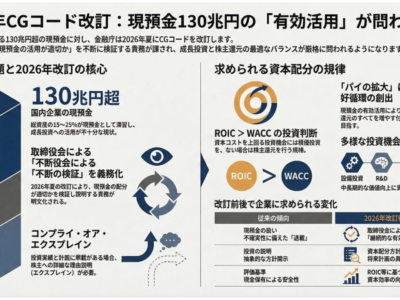 日本企業が手元に溜め込んだ現預金は、総額で130兆円超と指摘され続けています。 「成長投資に回せ」「株主に還元しろ」――こうした声が強まる中、金融庁は202 …