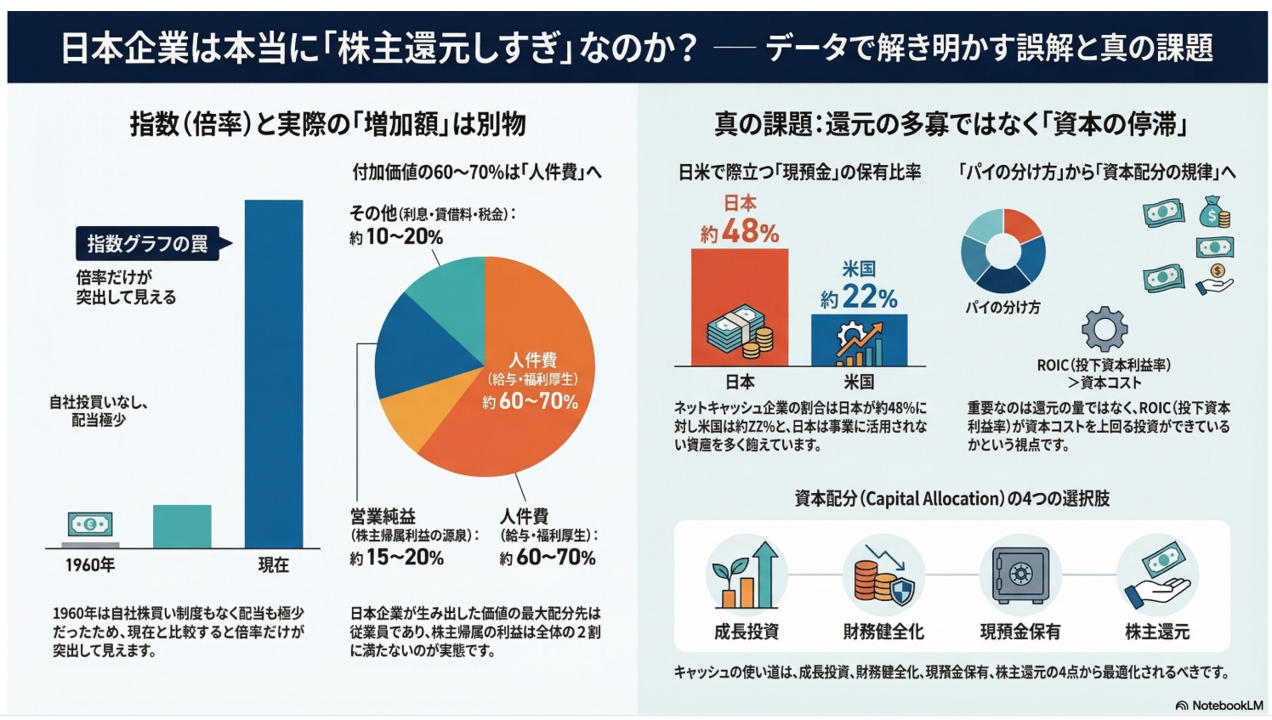 日本企業に本当に問われているのは、株主還元の多寡ではありません。資本をどこに配分し、どれだけのリターンを生み出しているのか。この問いに正面から向き合うことこそが、いま求められていることだと思います。